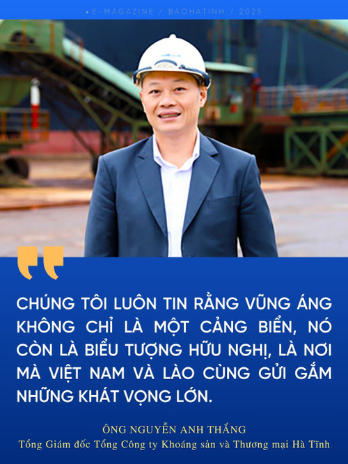 Ông Nguyễn Anh Thắng – Tổng Giám đốc Tổng Công ty Khoáng sản và Thương mại Hà Tĩnh cho biết:“ Từ những ngày đầu khó khăn nhất, Đảng và Nhà nước Việt Nam đã định hướng, tạo điều kiện từ hạ tầng, chính sách để mọi hàng hoá của Lào qua cảng Vũng Áng. Chúng tôi luôn tin rằng Vũng Áng không chỉ là một cảng biển, nó còn là biểu tượng hữu nghị, là nơi mà Việt Nam và Lào cùng gửi gắm những khát vọng lớn. Mỗi bước tiến của Vũng Áng trong hiện tại hay tương lai đều sẽ là một dấu ấn đẹp, tiếp nối truyền thống thủy chung Việt – Lào qua mọi thời kỳ…”.