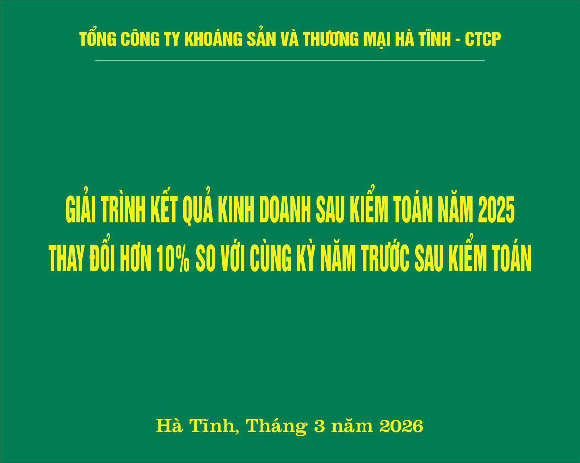 Giải trình kết quả kinh doanh sau kiểm toán năm 2025 thay đổi hơn 10% so với cùng kỳ năm trước sau kiểm toán