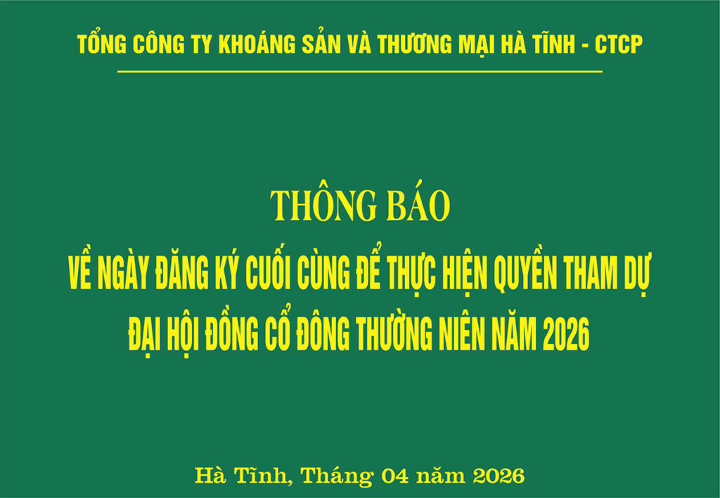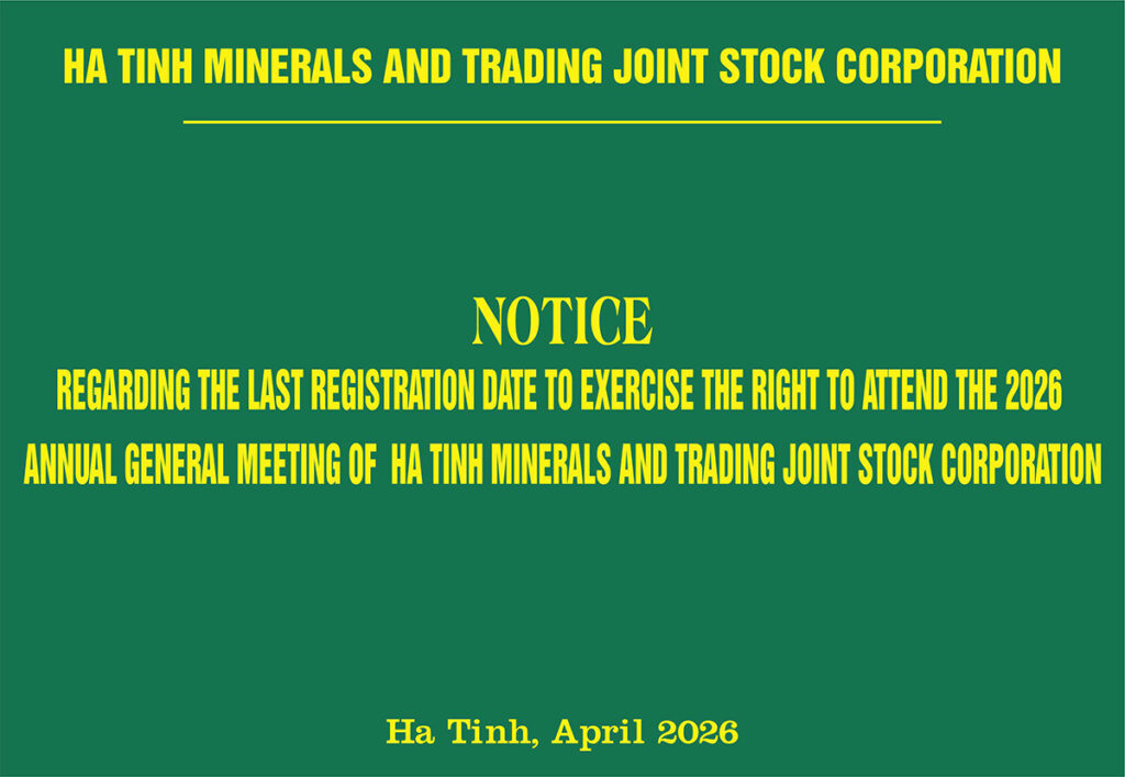 Regarding the explanation of the business results for the first half of 2025 before an after audit, and year over year. admin 12/08/25 Quan Hệ Cổ Đông, Thông Tin Cho Cổ Đông, Thông Tin Tài Chinh 0 Posted on 12/08/2025 by adminRegarding the explanation of the business results for the first half of 2025 before an after audit, and year over year. Xem thêm: Chân dung 58 đại biểu HĐND tỉnh Hà Tĩnh nhiệm kỳ 2026 – 2031 Thiên Ý, điểm dừng chân lý tưởng của du khách Can Lộc và Mitraco liên kết sản xuất nông nghiệp TKV mạnh tay cắt giảm lương nhân viên Report on corporate governance 2024 list of state shareholders and majority shareholdersBài viết cùng chủ đề: Regarding the last registration date to exercise the right to attend the 2026 annual general meeting of ha tinh minerals and trading joint stock corporation Thông báo về ngày đăng ký cuối cùng để thực hiện quyền tham dự Đại hội đồng cổ đông thường niên năm 2026 Resolution regarding the extension of the 2026 annual general meeting of shareholders of Ha tinh Minerals and Trading joint stock corporation Nghị quyết về việc gia hạn Đại hội đồng cổ đông thường niên Tổng công ty năm 2026 REGARDING THE EXPLANATION OF THE AUDITED BUSINESS RESULTS FOR 2025 CHANGING BY MORE THAN 10% YEAR OVER YEAR. Giải trình kết quả kinh doanh sau kiểm toán năm 2025 thay đổi hơn 10% so với cùng kỳ năm trước sau kiểm toán AUDITED CONSOLIDATED FINANCIAL STATEMENTS FOR THE FINANCIAL YEAR ENDED 31 DECEMBER 2025 AUDITED SEPARATE FINANCIAL STATEMENTS FOR THE FINANCIAL YEAR ENDED 31 DECEMBER 2025 Báo cáo tài chính hợp nhất cho năm tài chính kết thúc ngày 31/12/2025 Báo cáo tài chính riêng đã được soát xét cho năm tài chính kết thúc ngày 31/12/2025 Financial statements for the period from 01 january 2025 to 31 december 2025 Consolidated financial statements 4th quarter for the period from 01 january 2025 to 31 december 2025 Báo cáo tài chính cho kỳ kế toán từ ngày 01/01/2025 đến ngày 31/12/2025 Giải trình kết quả kinh doanh quý 4.2025 và năm 2025 thay đổi hơn 10% so với cùng kỳ năm trước Báo cáo tài chính hợp nhất quý IV cho kỳ kế toán từ ngày 01/01/2025 đến ngày 31/12/2025 LIST OF STATE SHAREHOLDERS AND MAJORITY SHAREHOLDERS Giải trình kết quả kinh doanh 6 tháng đầu năm 2025 trước và sau kiểm toán và so với cùng kỳ năm trướcInterim consolidated financial statements for the accounting period from 01 january 2025 to 30 june 2025