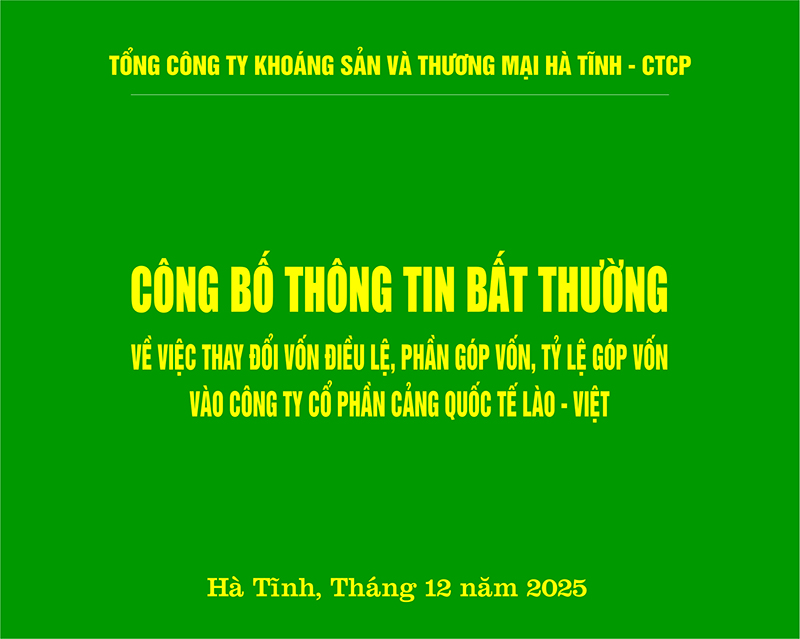 Về việc giải trình lợi nhuận sau thuế 6 tháng đầu năm 2018 sau kiểm toán thay đổi hơn 10% so với 6 tháng đầu năm 2018 trước kiểm toán của công ty mẹ admin 12/09/18 Thông Tin Cho Cổ Đông, Tin Tổng Công Ty 0 Posted on 12/09/201820/03/2019 by adminVề việc giải trình lợi nhuận sau thuế 6 tháng đầu năm 2018 sau kiểm toán thay đổi hơn 10% so với 6 tháng đầu năm 2018 trước kiểm toán của công ty mẹ Xem thêm: Những nền kinh tế mạnh nhất thế giới Gấp rút xây dựng chiến lược thực phẩm cho KKT Vũng Áng Công ty cổ phần Thiên Ý II Thông báo mời chào giá thiết bị nhà máy luyện xỉ Titan Thông báo mời họp và tài liệu Đại hội đồng cổ đông thường niên năm 2022Bài viết cùng chủ đề: Công bố thông tin bất thường về việc thay đổi vốn điều lệ, phần vốn góp, tỷ lệ góp vốn vào Công ty cổ phần Cảng Quốc tế Lào – Việt Cảng Vũng Áng sôi động “mùa cao điểm” Mitraco Hà Tĩnh ký hợp tác với Đại học Kasetsart Giao lưu văn nghệ chào mừng Quốc khánh nước bạn Lào Công bố thông tin về việc thay đổi giấy chứng nhận đăng ký doanh nghiệp số 3000310977 của Tổng Công ty Khoáng sản và Thương mại Hà Tĩnh – CTCP Thông báo về việc thay đổi Chủ tịch Hội đồng quản trị và Tổng giám đốc Tổng công ty Hội nghị cấp cao Hà Tĩnh – Khăm Muồn: Thúc đẩy hợp tác, gắn kết phát triển Đoàn đại biểu Tòa án nhân dân tối cao Lào tham quan KKT Vũng Áng Regarding the explanation of the business results in quarter 3/2025 changing by more than 10% year over year. Giải trình kết quả kinh doanh quý 3 năm 2025 thay đổi hơn 10% so với cùng kỳ năm trước Consolidated financial statements 3rd Quarter for the period from 01 january 2025 to 30 september 2025 Báo cáo tài chính hợp nhất quý 3 cho kỳ kế toán từ ngày 01/01/2025 đến ngày 30/9/2025 Regarding the explanation of the business results in quarter 3/2025 changing by more than 10% year over year. Giải trình kết quả kinh doanh quý 3 năm 2025 thay đổi hơn 10% so với cùng kỳ năm trước INTERIM FINANCIAL STATEMENTS FOR THE PERIOD FROM 01 JANUARY 2025 TO 30 SEPTEMBER 2025 Báo cáo tài chính riêng quý 3 năm 2025 Giải trình lợi nhuận sau thuế quý II/2018 thay đổi hơn 10% so với quý II/2017Cuối năm 2019, phấn đấu đưa cầu cảng số 3 Vũng Áng hoạt động